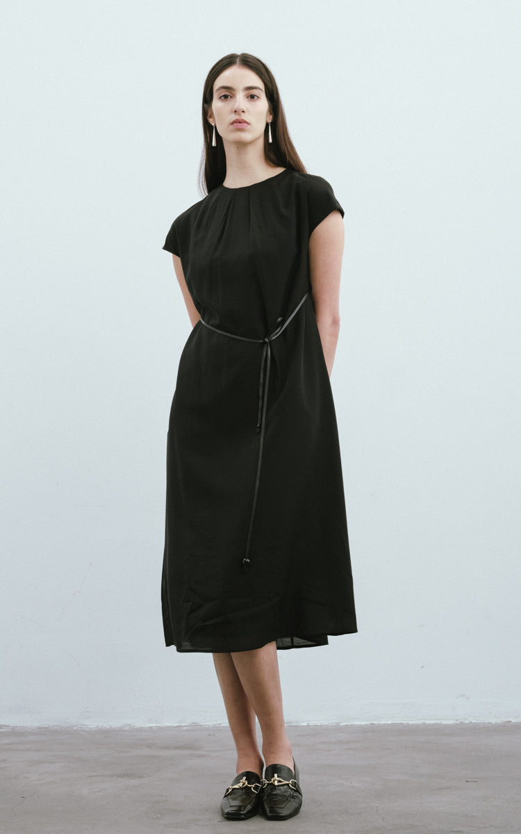 The round neckline provides a classic and versatile look, making it perfect for both casual and formal occasions.
