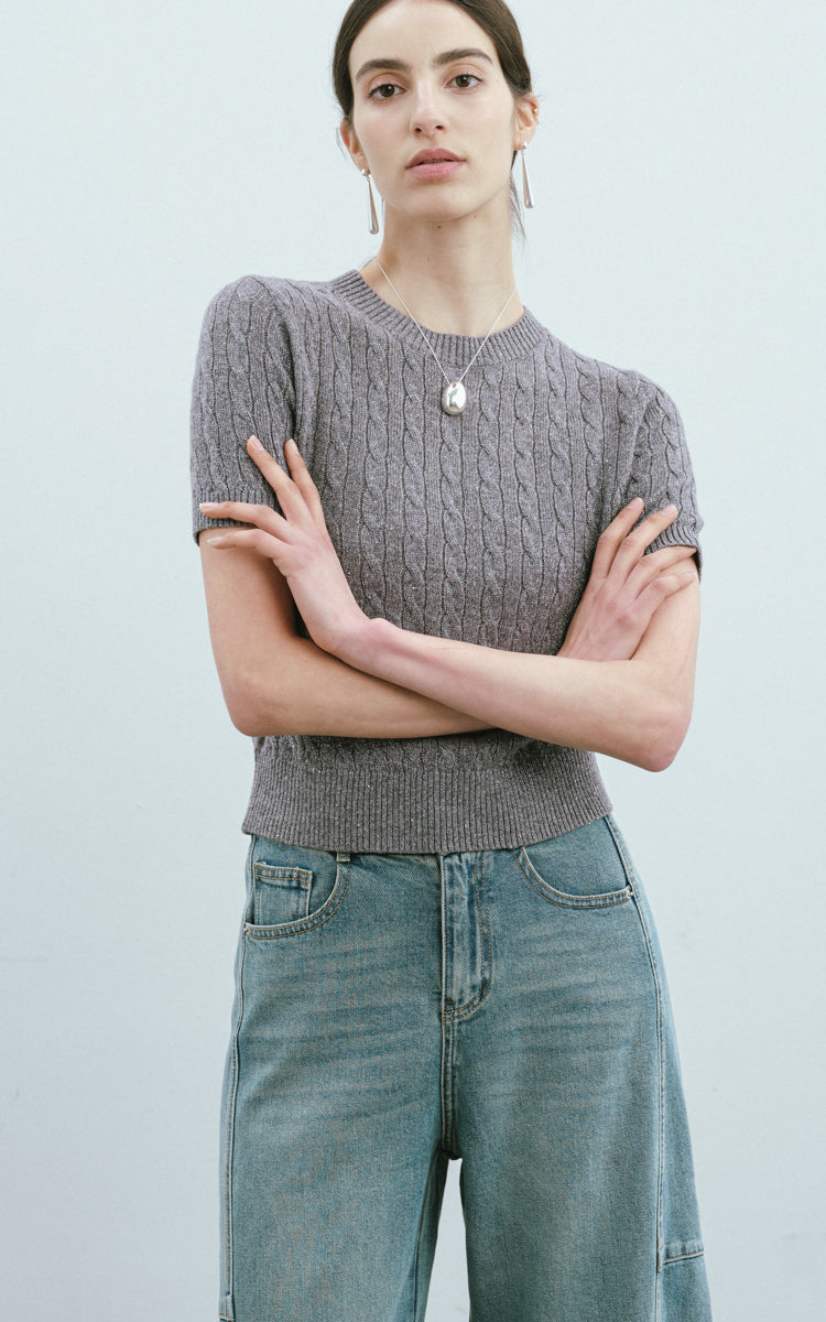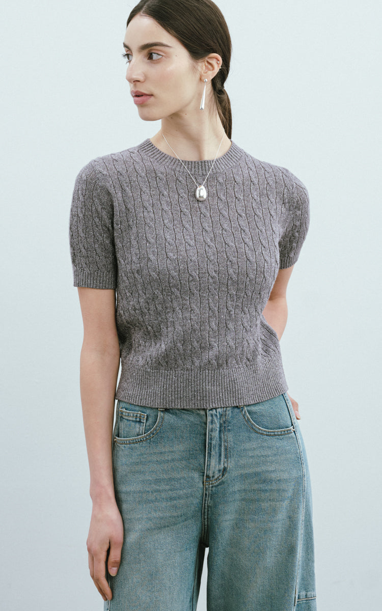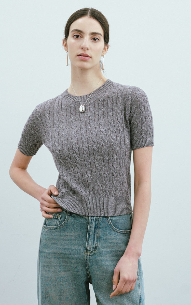 The grey colorway is enhanced with subtle metallic threads, adding a touch of sophistication and shine.